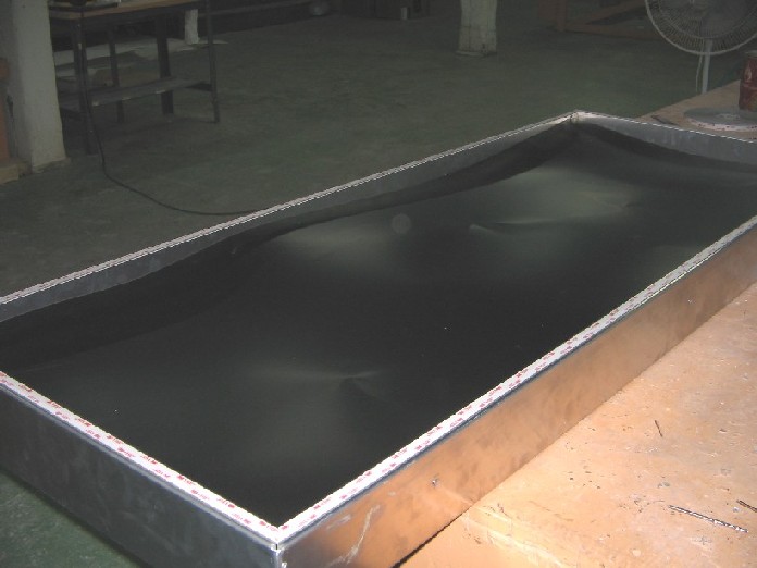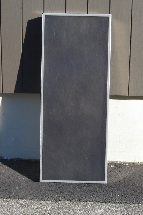 Step 4: Your ready to install the black absorber sheet in the box now. Remove the release paper from the adhesive tape on the center support and the small clips along the inside of the box and place the absorber sheet carefully into the box. Now apply some pressure on the center support and side clips to bond the tape to the absorber sheet. Note: See attached 3M Double Coated Acrylic foam tape instruction sheet for more information on the application of this adhesive tape. The airheater should now look like the picture below.