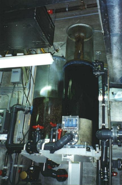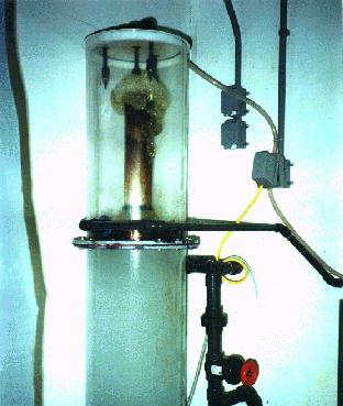 Protein skimming is the term most commonly used by aquarium and aquaculture professionals to describe the removal of suspended and dissolved waste from fish tanks by means of air flowtation. Protein skimming is a relatively simple process which relies on the physical and chemical properties of coagulation. A summary explanation describes organic molecules (surfactants) as polar at one end and non-polar at the other. The polar end is hydrophilic "or water loving" and attracted to water molecules. The non polar portion of the molecule tends to orient their hydrophobic parts in contact with air. This surface active characteristic allows them to concentrate at air/water interfaces. To be effective, the protein skimming process requires a contact column in which air and water containing these surfactants can interact. The air and water interfaces are provided by supplying a constant injection of small bubbles to a proportional volume of water in the column and allowing them to mix and then migrate to the surface. During this migration, suspended and dissolved organic material (protein is a specific class of organic material) congregate at the air/water interfaces, with the bubbles forming a "skin" like character on their surface. At the upper levels of the column most of the water drains away leaving a concentrated residue of foam composed primarily of organic material. The skimming off of this foam waste removes it from the life support system. It is, therefore, no longer susceptible to undesirable microbiological degradation which will contribute to increased oxygen demand in an aquatic system. Protein skimming is essentially a perpetual backwashing filter. In addition, skimming enhances the oxygenation of a system both biologically and physically. Biological oxygen demand is reduced by the direct removal of biodegradable organic carbon (protein), as well as bacteria in the water column. Physically, the increased surface area provided by the injection of large volumes of air (in the form of small bubbles) into a column of water creates a condition for gas exchange. The addition of a small dose of ozone to the process, with its coagulative and disinfectant properties, makes skimming possibly the best component one could add to a modern life support system.